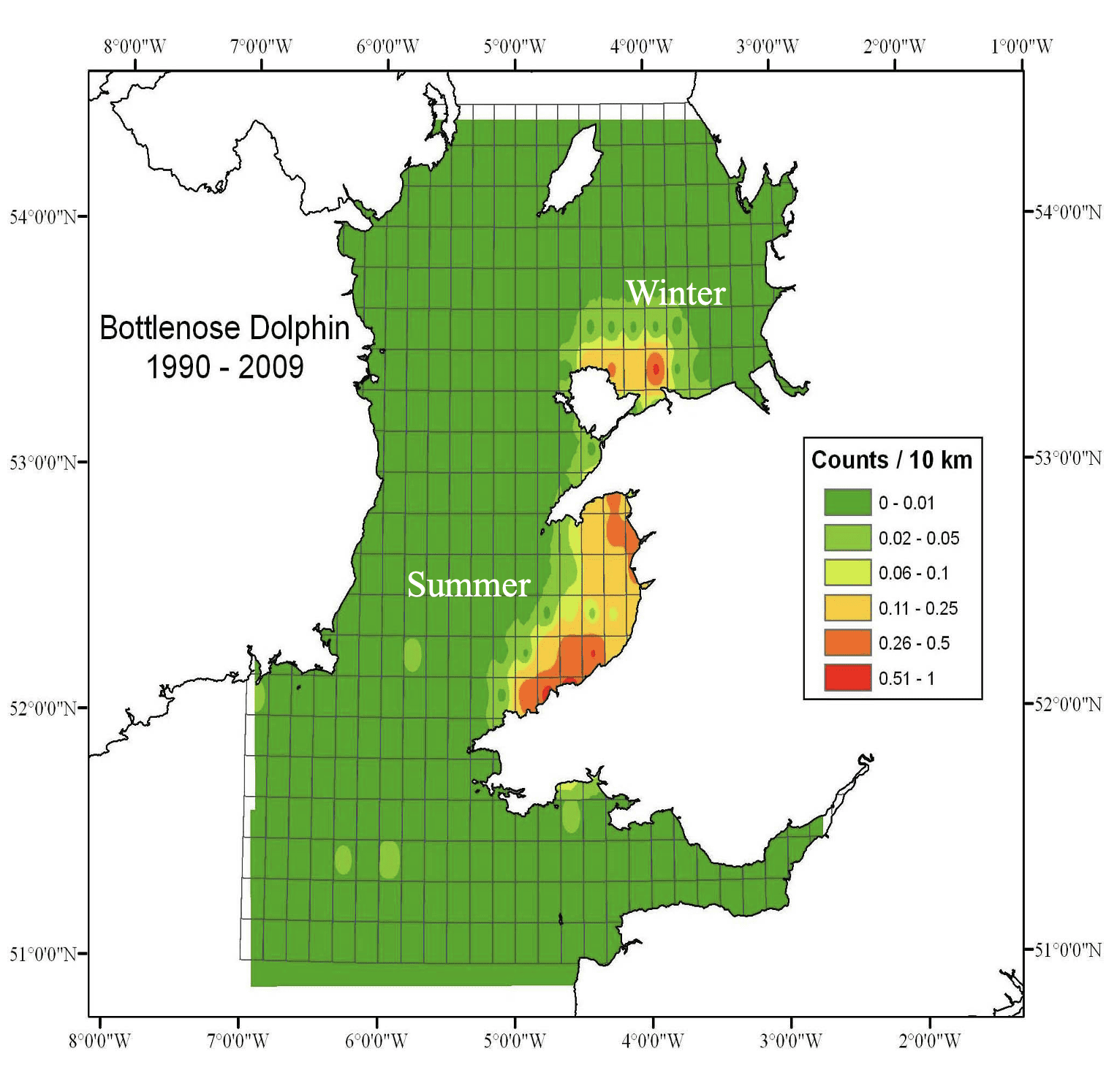 Bottlenose dolphin distribution from the Welsh Atlas (2012).