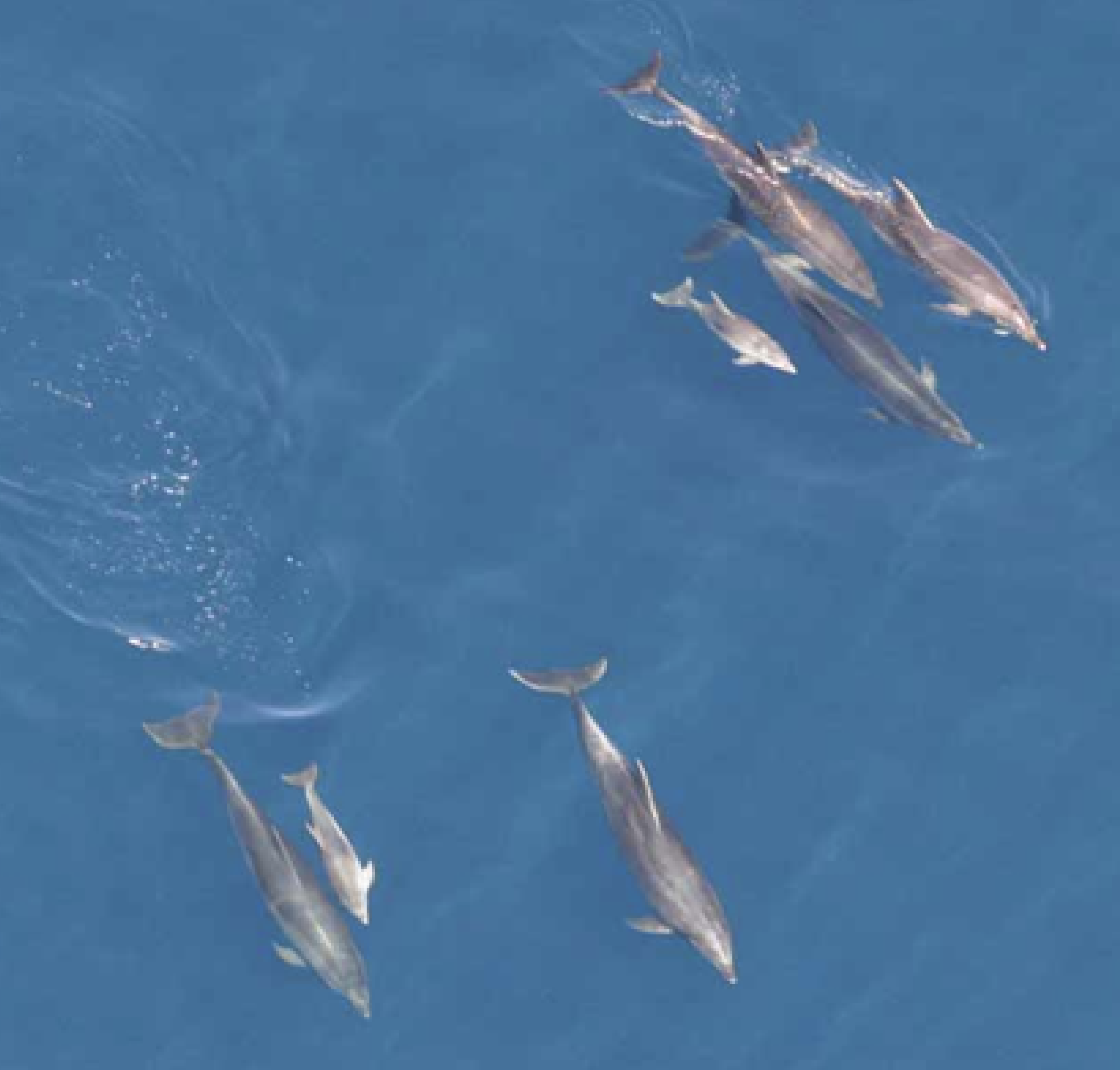 Drone photograph of bottlenose dolphins.