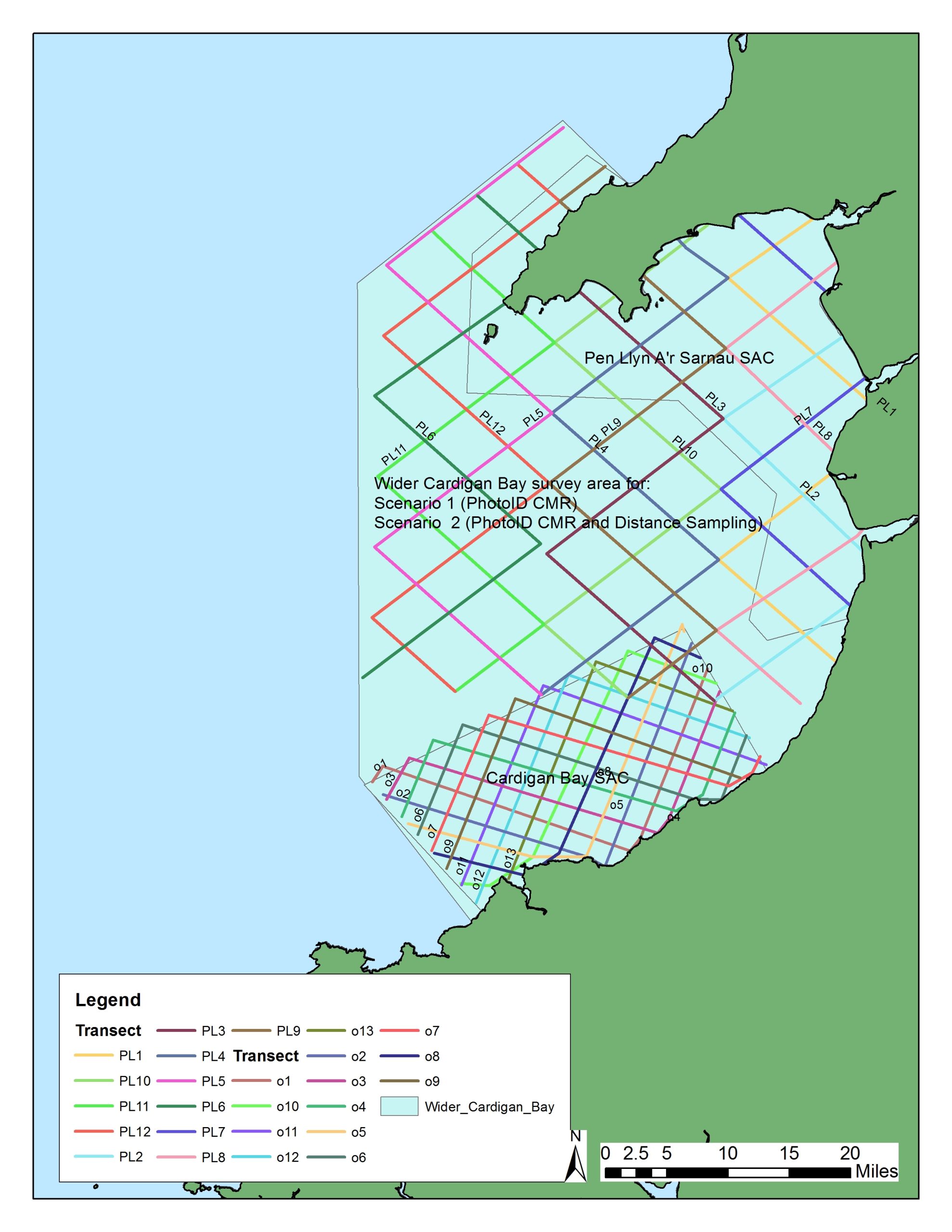 Cetacean monitoring wider Cardigan Bay transect lines.