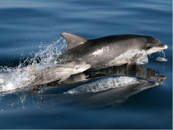 Mother and calf bottlenose dolphin in the Cardigan Bay SAC