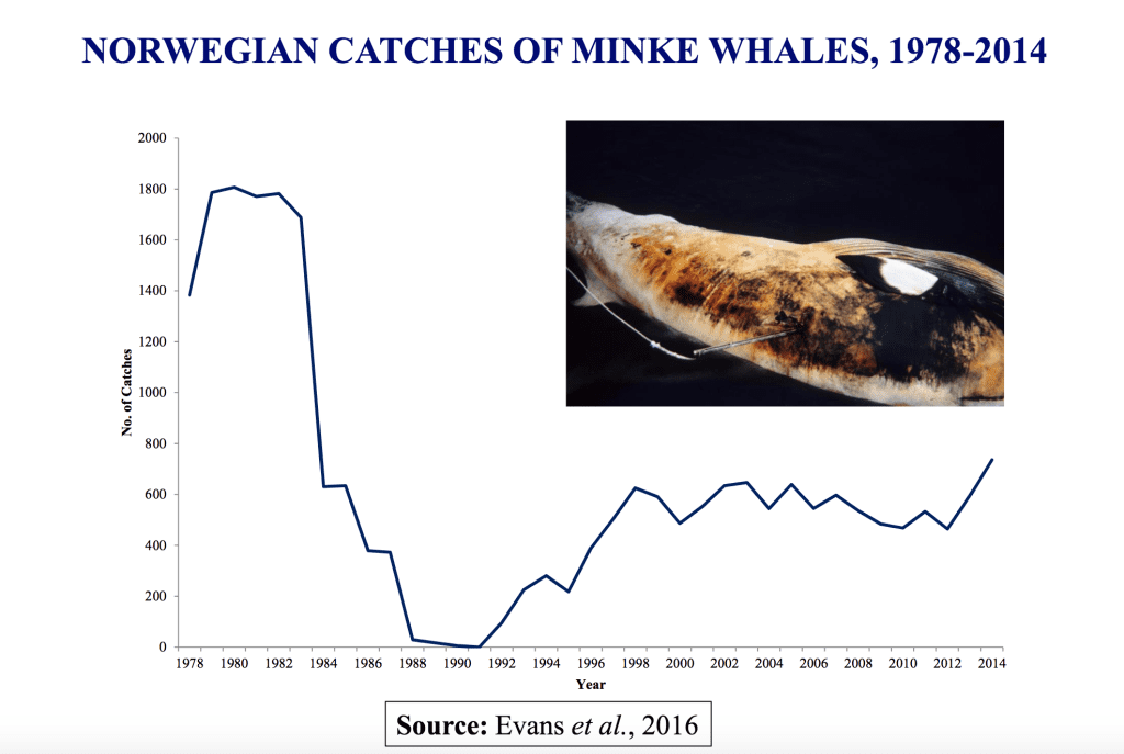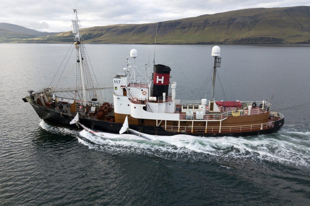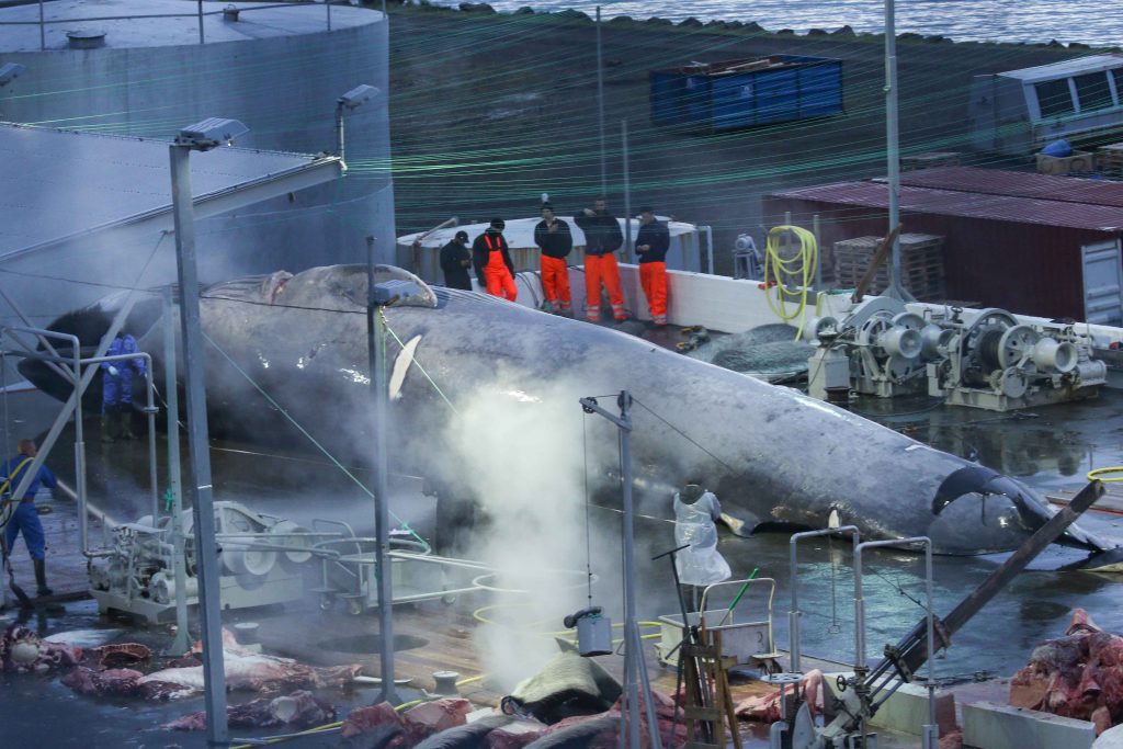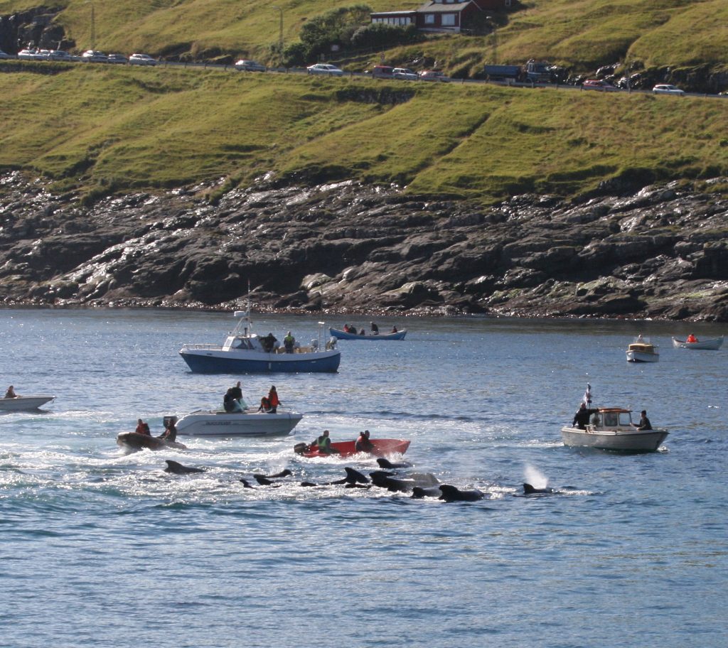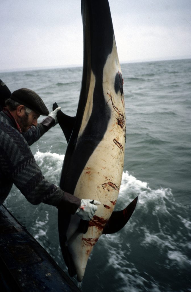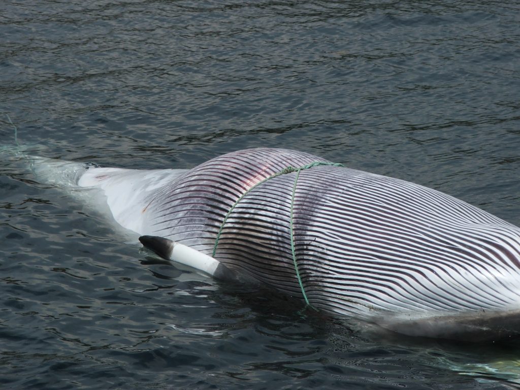 Most of the great whales of the world’s oceans were reduced to near extinction by centuries of hunting, with Britain being one of the countries leading the way in causing the demise of these animals. As recently as the late 1920s, there were active whaling stations in Shetland and the Outer Hebrides, and on the west coast of Ireland. Collectively, they killed nearly 10,000 whales in British waters over a period of just fifteen years. Species like the North Atlantic right whale, and blue whale have become very rare in UK waters and the Atlantic gray whale became extinct. Although, after thirty years of protection in the North Atlantic, there are some signs of recovery for species such as humpback whale. The 1990s saw a resumption of hunting in the guise of scientific whaling, with Norway annually taking around 600 minke whales in waters north of Shetland. Iceland resumed commercial whaling, taking around 150 fin whales in 2017 and 2018, but then temporarily ceased whaling. The Faroe Islands continue to kill an average of between around 500 and 1,000 long-finned pilot whales each year, occasionally also taking other species such as Atlantic white-sided dolphin and killer whale.