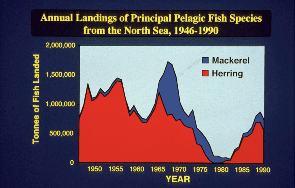 Fisheries themselves can have a major impact upon the status and distribution of various UK cetaceans. Local stocks of several fish species have shown marked declines over the last half century. First it was herring and mackerel in the 1960s and 1970s, then it was sprat and sandeel in the 1980s and 1990s, and in recent times, cod, whiting, sole, and plaice have also all experienced declines in part due to overfishing. All of these fish species are an important food source for several cetacean species.