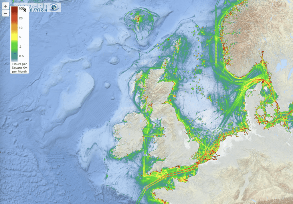 Marine mammal species are being exposed to an increasing amount of noise pollution in shelf seas. Marine traffic around parts of the British Isles is amongst the most intense of anywhere in the world, the North Sea alone receiving more than half a million ship movements a year. Seismic exploration for oil and gas extended to cetacean rich waters west of Scotland and Ireland with intense low frequency sounds posing a threat, particularly to baleen whales. Pile driving activities used in the construction of offshore wind farms have been shown to exclude porpoises over large areas and extended periods of time that may number several years. The use of mid-frequency long-range active sonar by the military has been shown to cause mass strandings of beaked whales in the North Atlantic and Mediterranean Sea. In the last three decades, the coastal zone has received increased public attention for recreational purposes with the inevitable consequences of cetaceans having a greater exposure to disturbance from speedboats and other pleasure craft, and the very real possibility of physical damage from collisions.