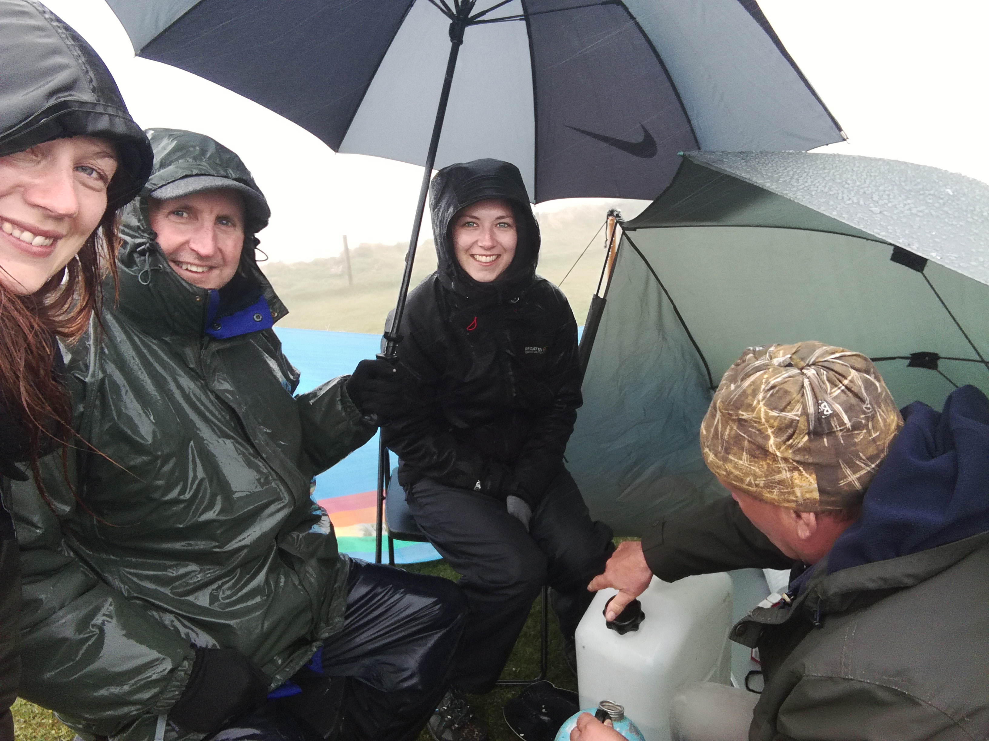 Our first day was a wash out. After much anticipation we sat up at the headland in a cloud. People came and went, but that incredible commaradary I alluded to got us through. I realised that by the end of the day we looked like those crazy British folks who rocked up at beauty spot and were determined to have a picnic whatever the weather!