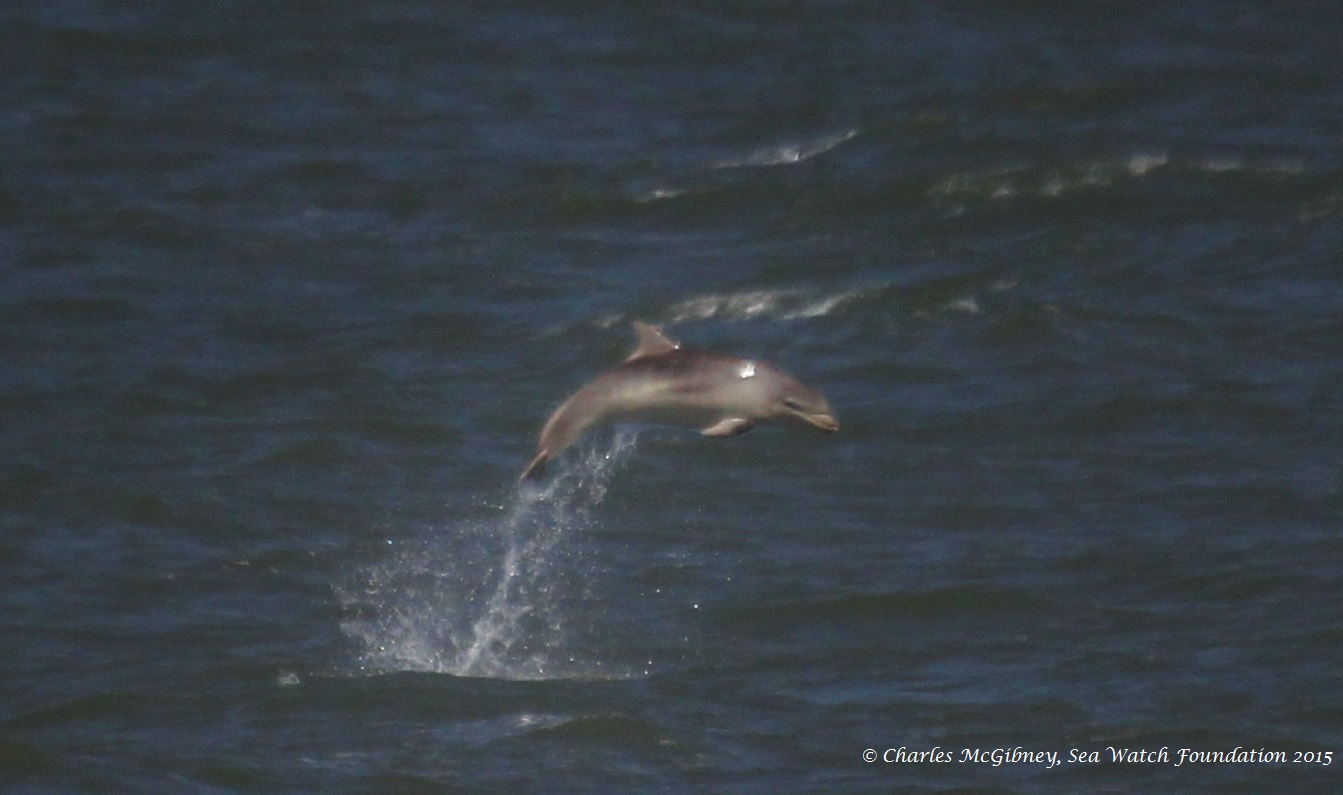 New Quay harbour has been a hub of activity in the last few weeks with dolphins coming in close to shore, socialising, leaping and feeding close to the land and leaving little need to step foot on the boat- which is good as the weather conditions have not been favourable for boat based surveying. Some of our adoptable dolphins such as Chris and Smoothy have been regularly sighted close to New Quay pier, resting and sometimes feeding. We have also had a number of sightings of groups of juveniles banding together and socialising slightly further offshore, while the adults feed and rest closer in.