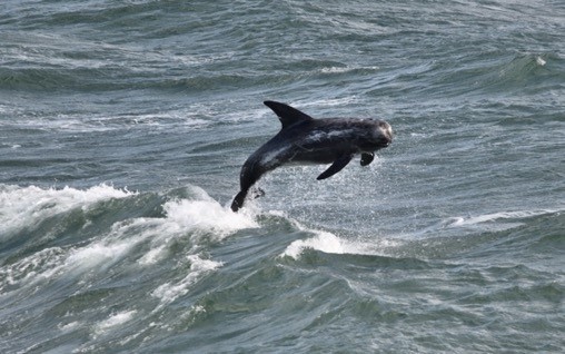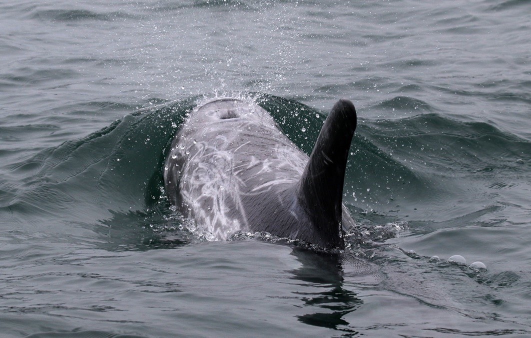 Risso’s dolphins are distinctive cetaceans with stocky features, blunt heads, and no discernible beak. They are born grey/olive-skinned but often lose this colouration as they get older due to scarring from other Risso’s dolphins and their favourite prey, squid. This species can be found in almost all temperate and tropical waters around the world, preferring deep water such as that on the edge of continental shelves. They often make an appearance off the north coast of Anglesey during the autumn.