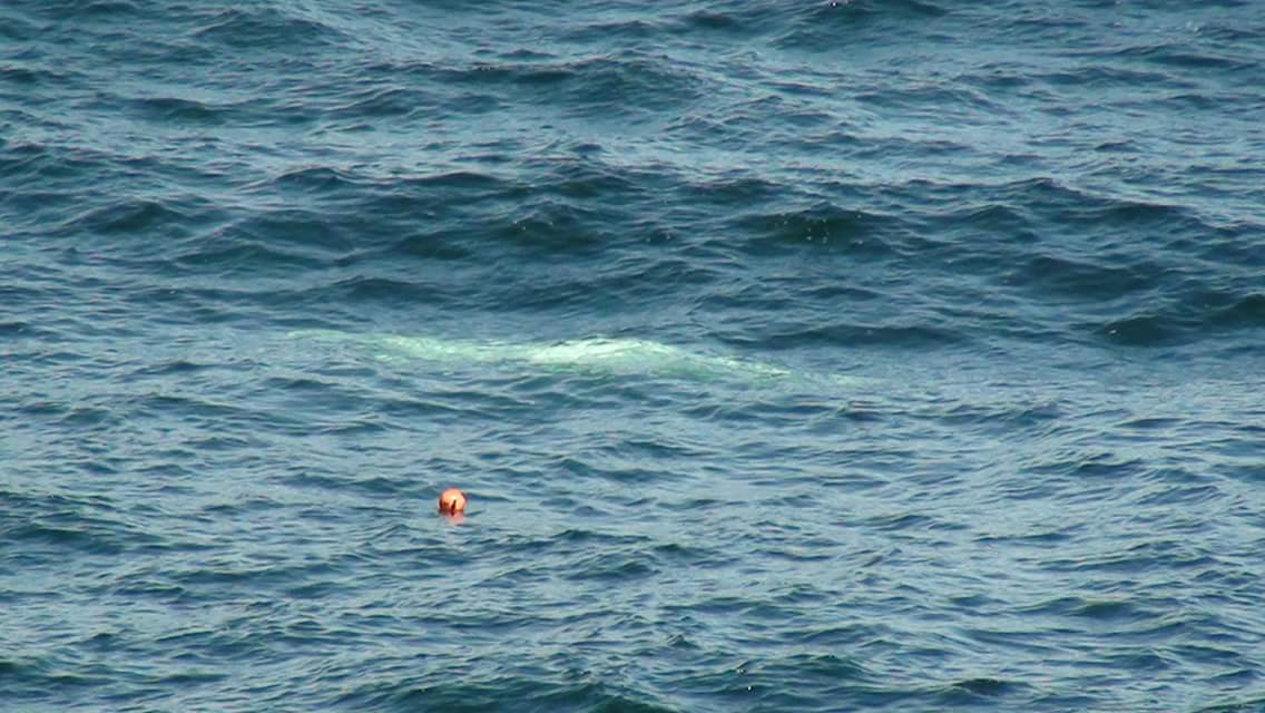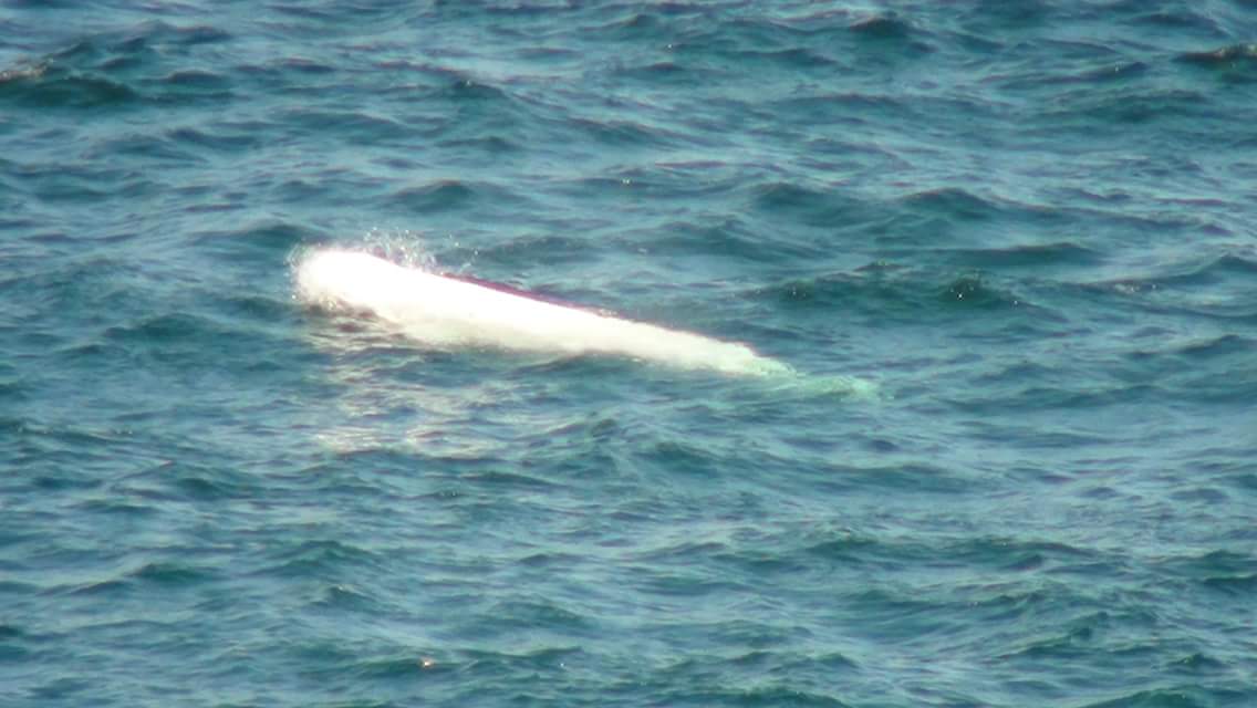 Figure 1. Beluga whale surfacing near Dunseverick, Co. Antrim, 30 July