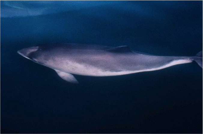 2. Instead of a tall, sickle shaped dorsal fin, which is a characteristic of many dolphin species, the harbour porpoise possesses a much smaller, triangular shaped fin, which can only just be observed above the surface of the water. This low profile dorsal fin makes it very difficult to spot harbour porpoises in rough weather, but operates as one of the most distinguishing characteristics of the porpoise species.