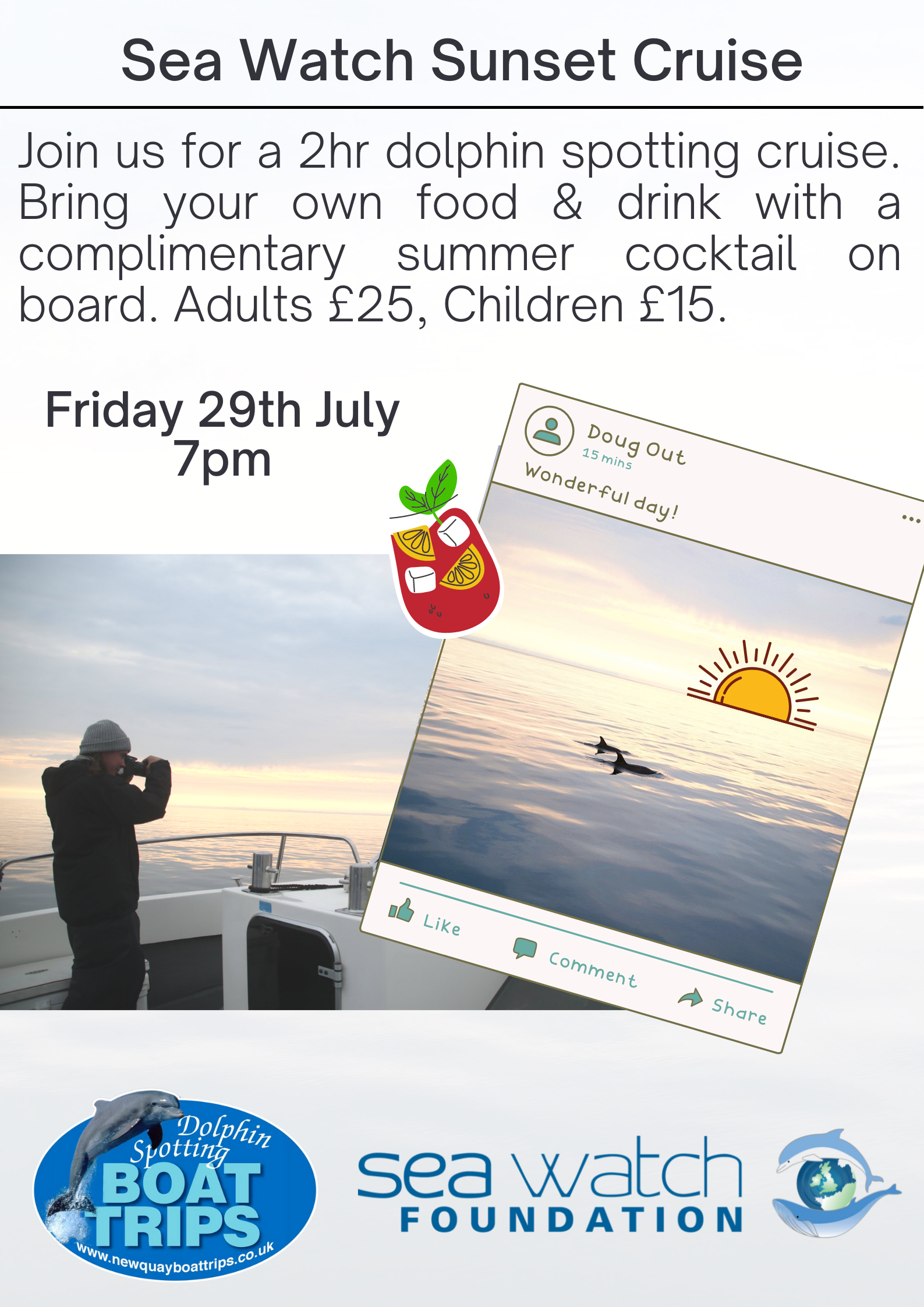 Daily events will be taking place in New Quay throughout the week including a welcome BBQ, pub quiz, workshops, landwatches, a bake sale, live music night and new this year – our Sea Watch Sunset Cruise with Dolphin Spotting Boat Trips! Our volunteer, Alex will be running a macrame workshop from our Dolphin Hub where she’ll be talking about starfish and then helping participants to make their own macrame starfish keyring. Details of all the events and how you can get involved can be found here.
