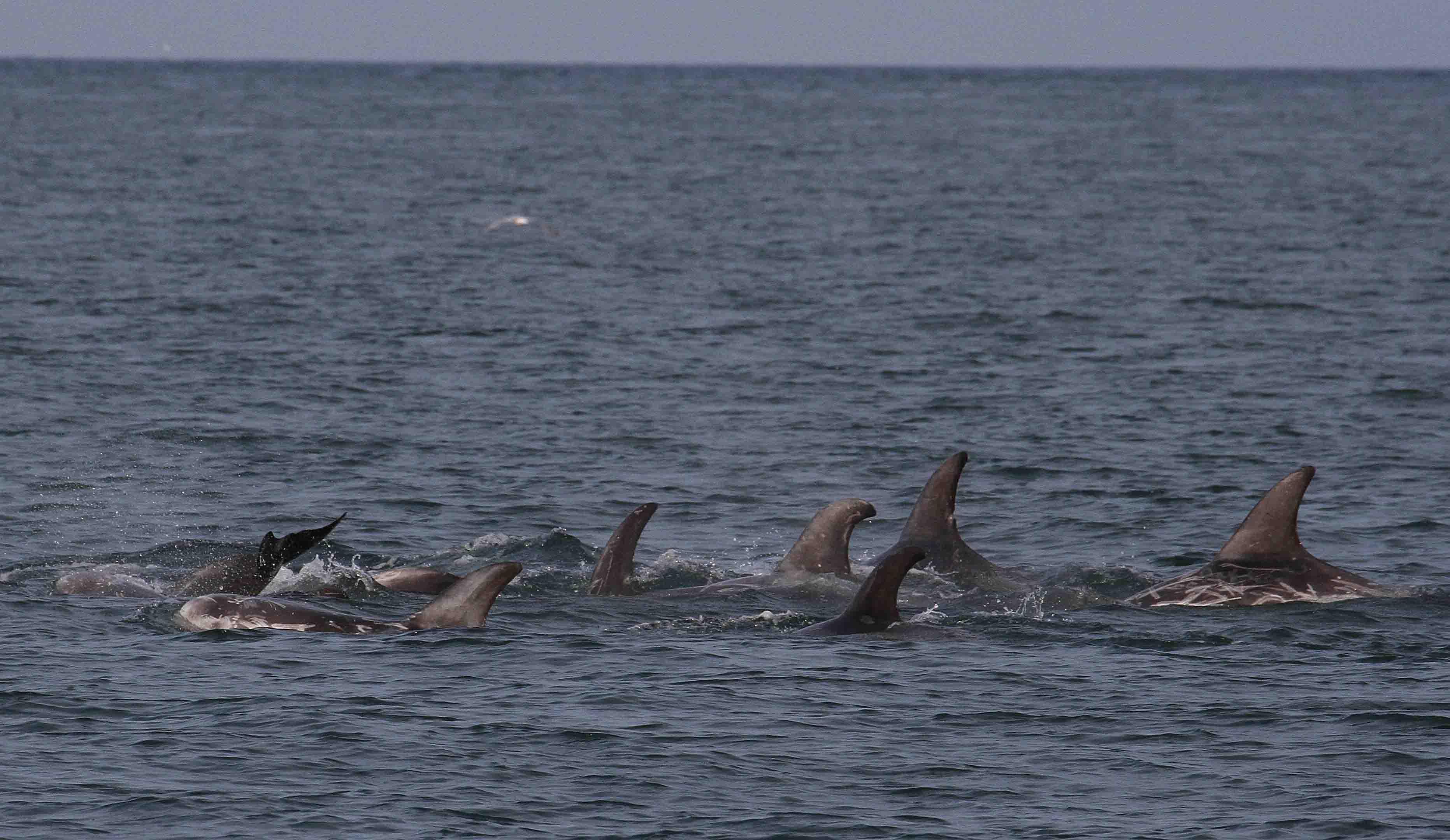 Some of the many Risso’s dolphins in Bull Bay, North Anglesey. Photo by Dr Peter Evans.