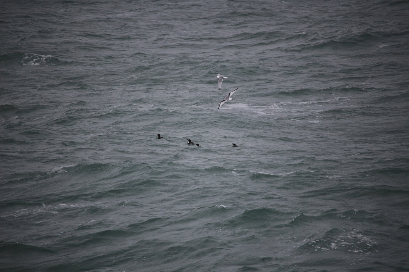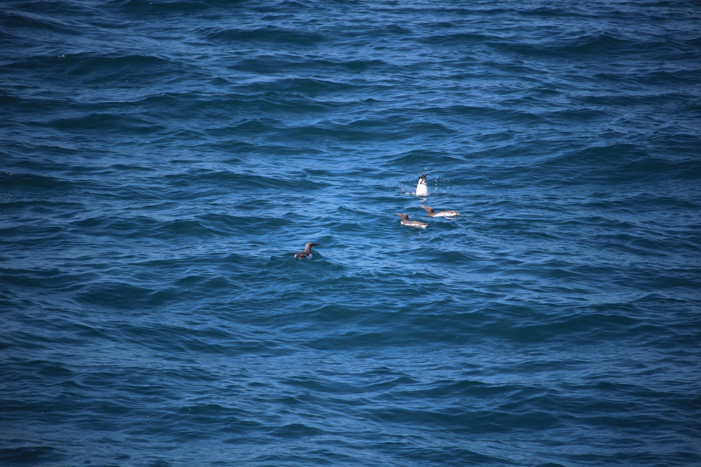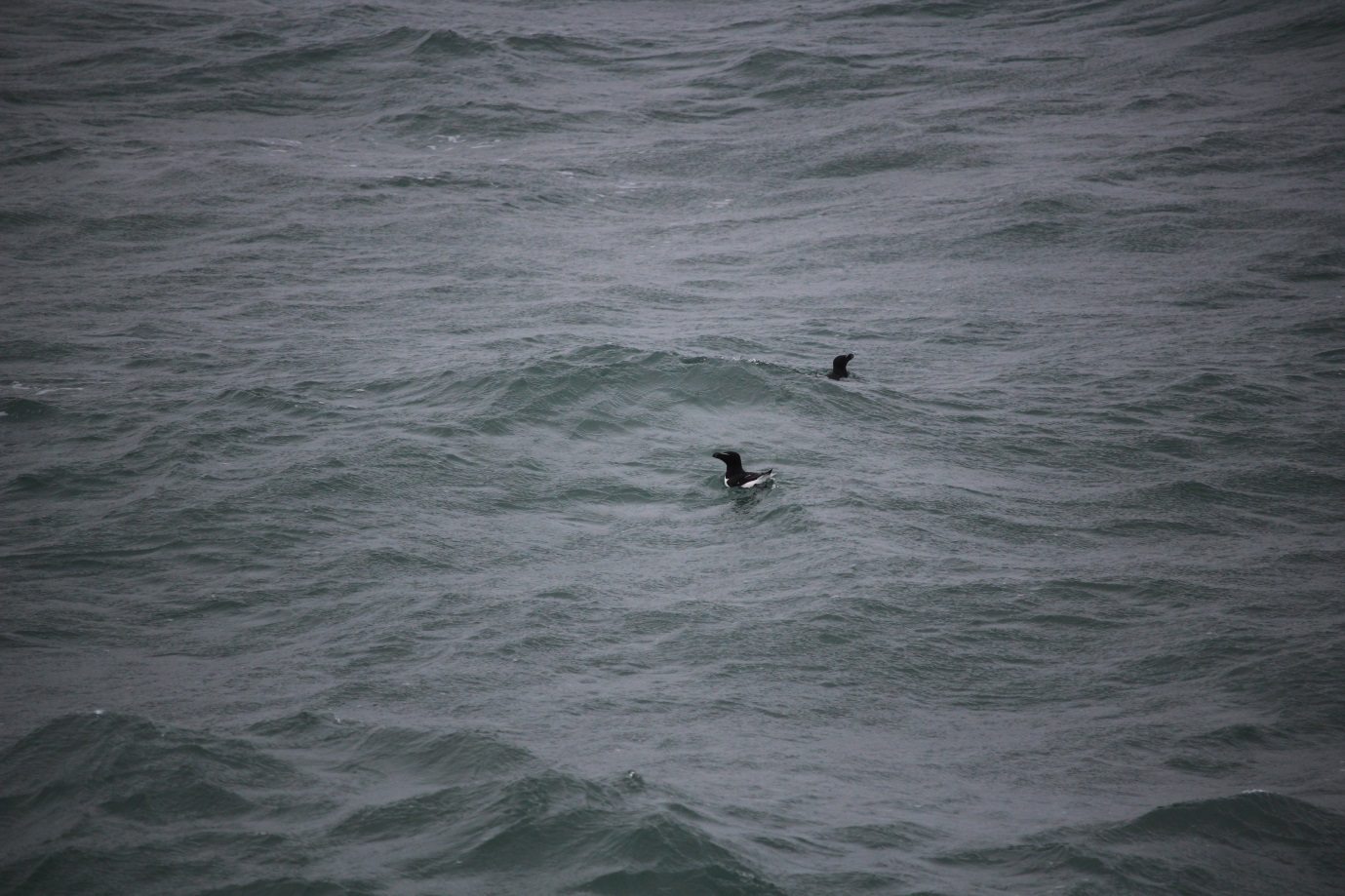 The current stormy weather within the Celtic Sea, along with a scientific crew change, have kept the Prince Madog moored up in Milford Haven for the last few days. A few transects were performed on the one day that was survey-able, but even this proved challenging – the chef deserves great credit for serving up a tasty soup for lunch! This provided some interesting observations however; Atlantic puffins and common guillemots dominated the western transect in deeper and slower waters, with large numbers of Razorbills being found in the eastern transect characterised by shallower and faster waters. These species show fundamental differences in their foraging behaviours, targeting different prey and in different parts of the water column. The subsequent inspection of data collected by the fish-finder will hopefully shed light on these results. Common dolphins were also abundant once again – with most sightings occurring to the west. With the new scientific crew on-board, the fridges and freezers restocked, and some restlessness of being stuck onshore not doing much, the vessel is now raring to go again. The Prince Madog will head south tomorrow morning (weather permitting) aiming for the northern Cornish and Devon coastlines to sample the seabed, with transects planned for near Lundy Island and Lands’ End.