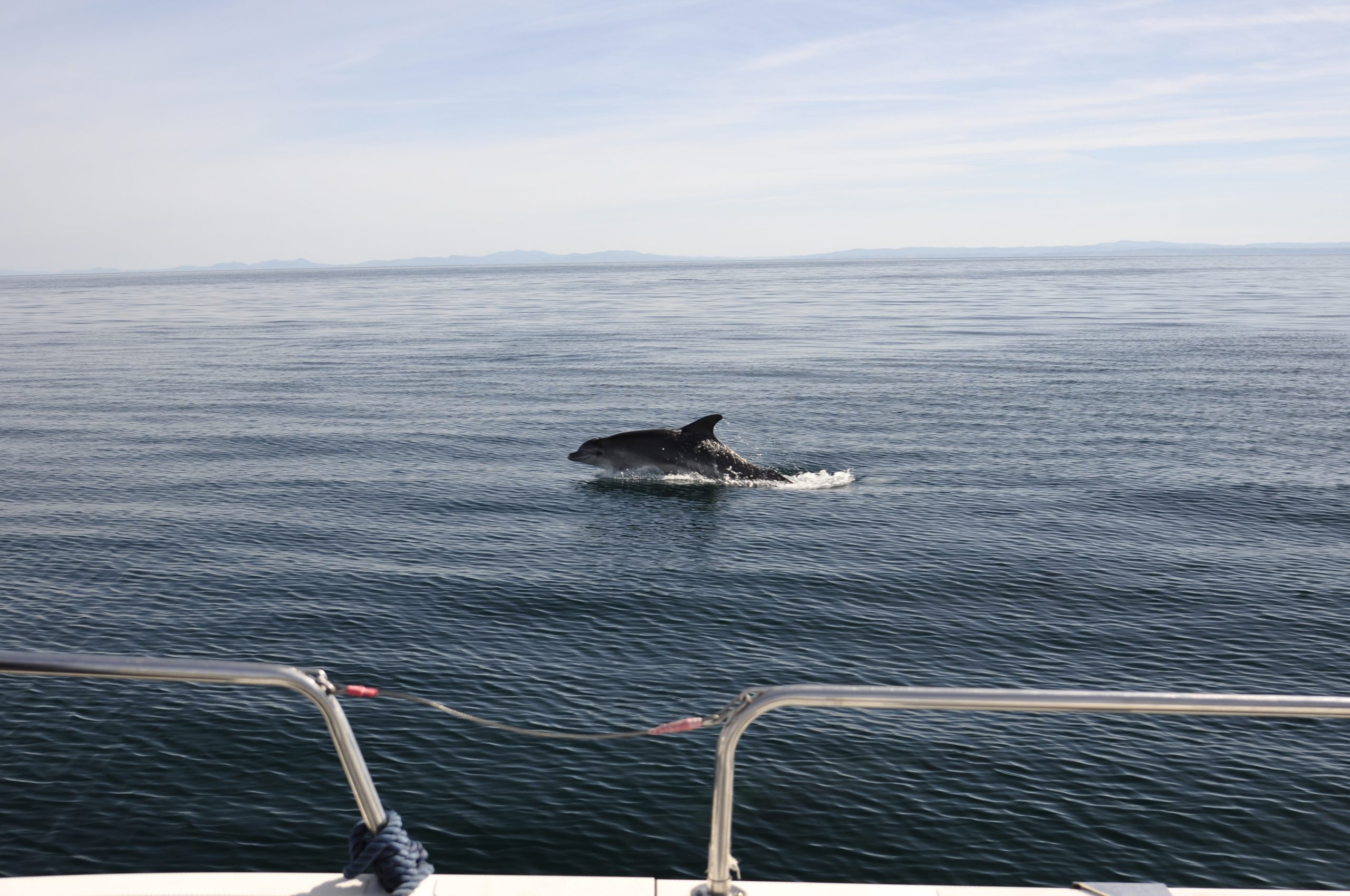 My most unforgettable moment at sea would have to be form one of the surveys I was fortunate to partake in earlier this year where we encountered not one but two pods of common dolphins which is very unusual for the area we were surveying, the dolphins had a great time playing around the boat whilst the team worked to take pictures of their fins for identification and they put on a great show playing in the bow wave and wake of the boat.