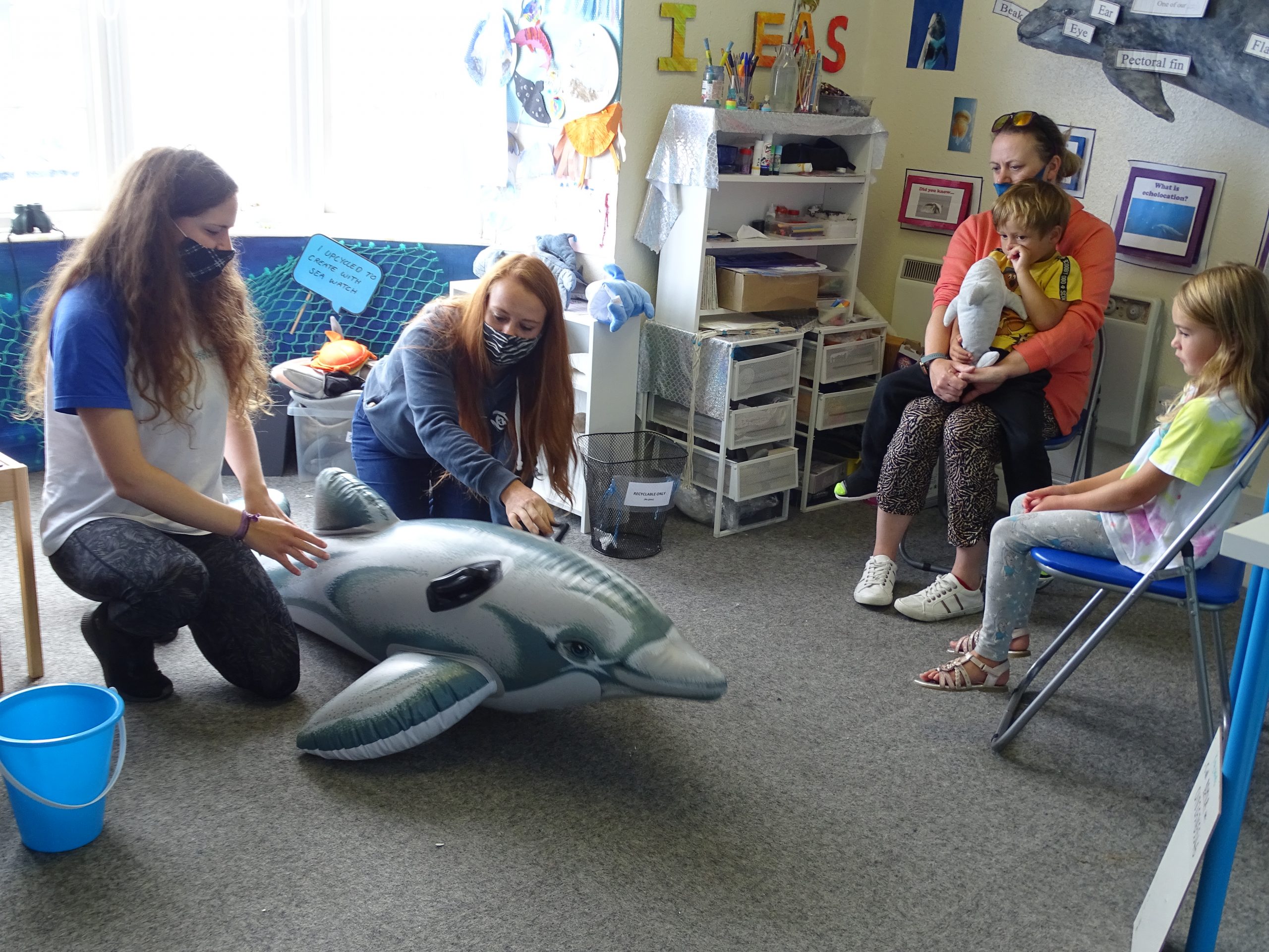 Once all the excitement settled down, experienced intern Clare and Education and Outreach assistant Fran led our workshop. Clare recently completed a Marine Mammal medic course with the British Divers Marine Life Rescue (BDMLR), so she was able to provide plenty of excellent guidance on how to help our stranded marine friends.