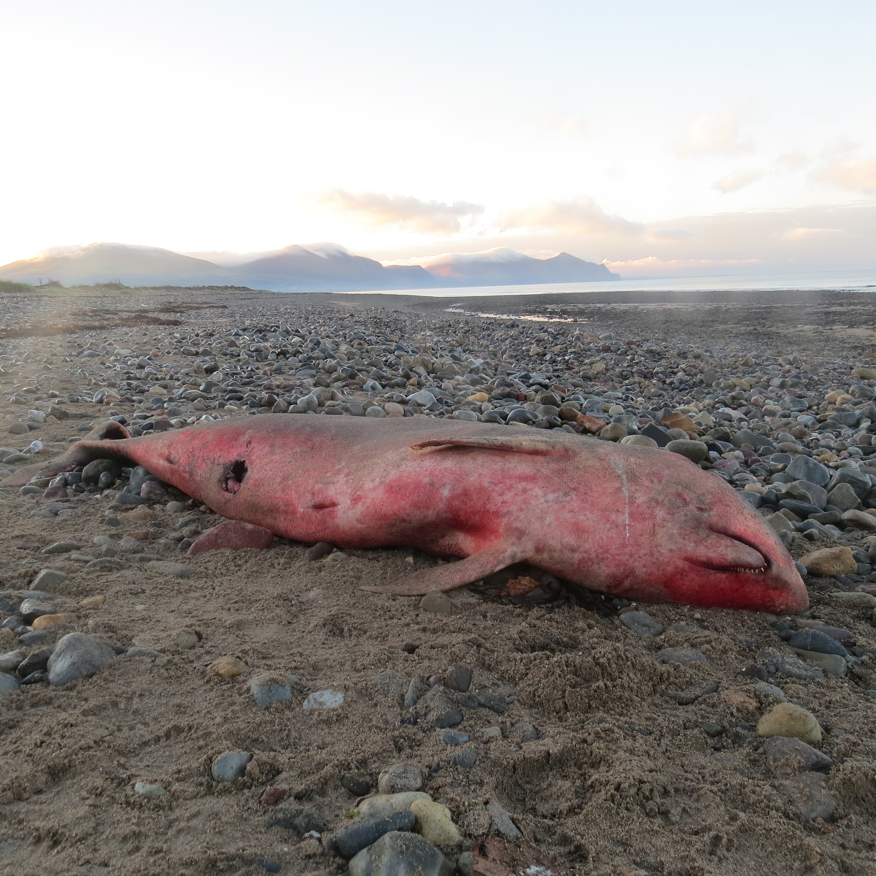 The Cetacean Strandings Investigation Programme will be attending to the animal during today and we’ll keep you informed of their findings. At least in its death it will help shed some light on this little known species so for that we can be grateful. Already, the carcass has helped to confirm that this Kogia whale is indeed a pygmy sperm whale, and not it’s similar relative the dwarf sperm whale, because of the number of its teeth. “There were 24 teeth in the lower jaw. Although dwarf sperm whales occasionally can have that number, it is more typical of pygmy sperm whale. Pygmy sperm whale has 24-32 whereas dwarf sperm whale has 14-24 teeth in the lower jaw” notes Dr Evans.