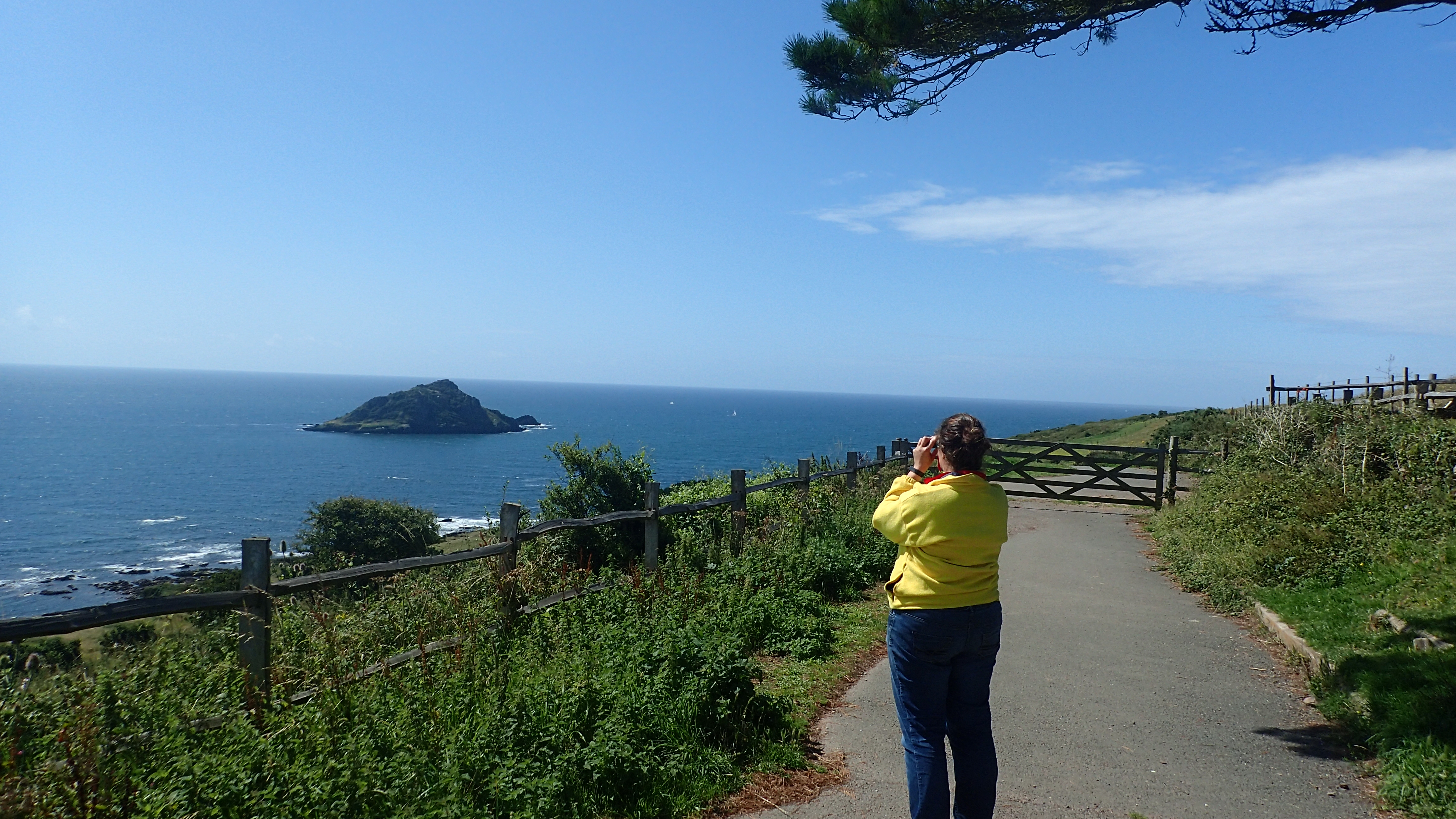 A volunteer watches over Wembury Point, South Devon. Photo by Devon Wildlife Trust.