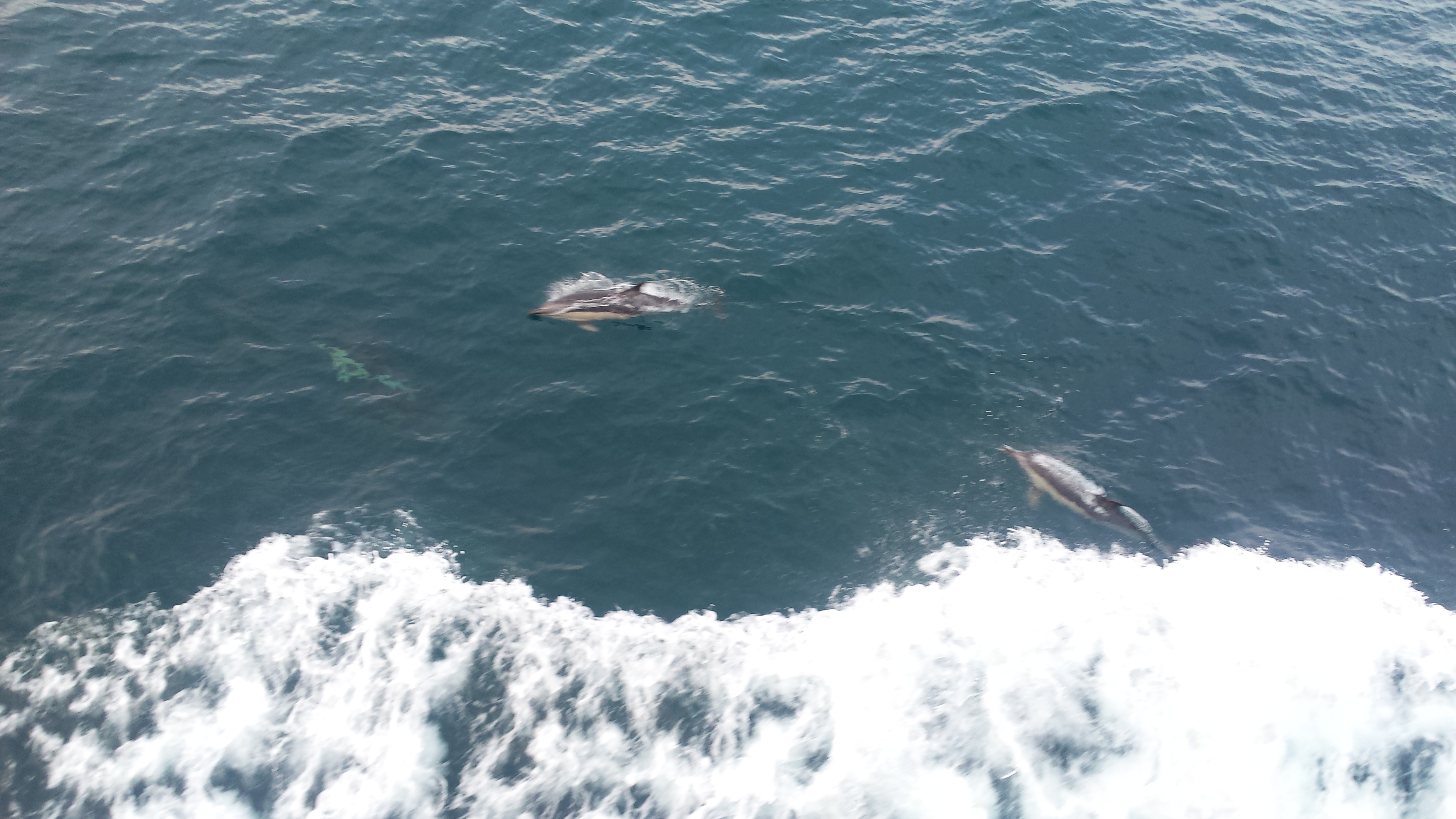 On our return from Scilly aboard the Scillonian once more, I was granted access to the bridge to collect data on the trip and to watch for cetaceans. It was cold despite all my outdoors gear, but I wasn’t going to give up so I stood there like the ship’s red-nosed figurehead and recorded all the way back to Penzance. I wasn’t disappointed. We were joined on several occasions by groups of common dolphin who made a beeline for the vessel.