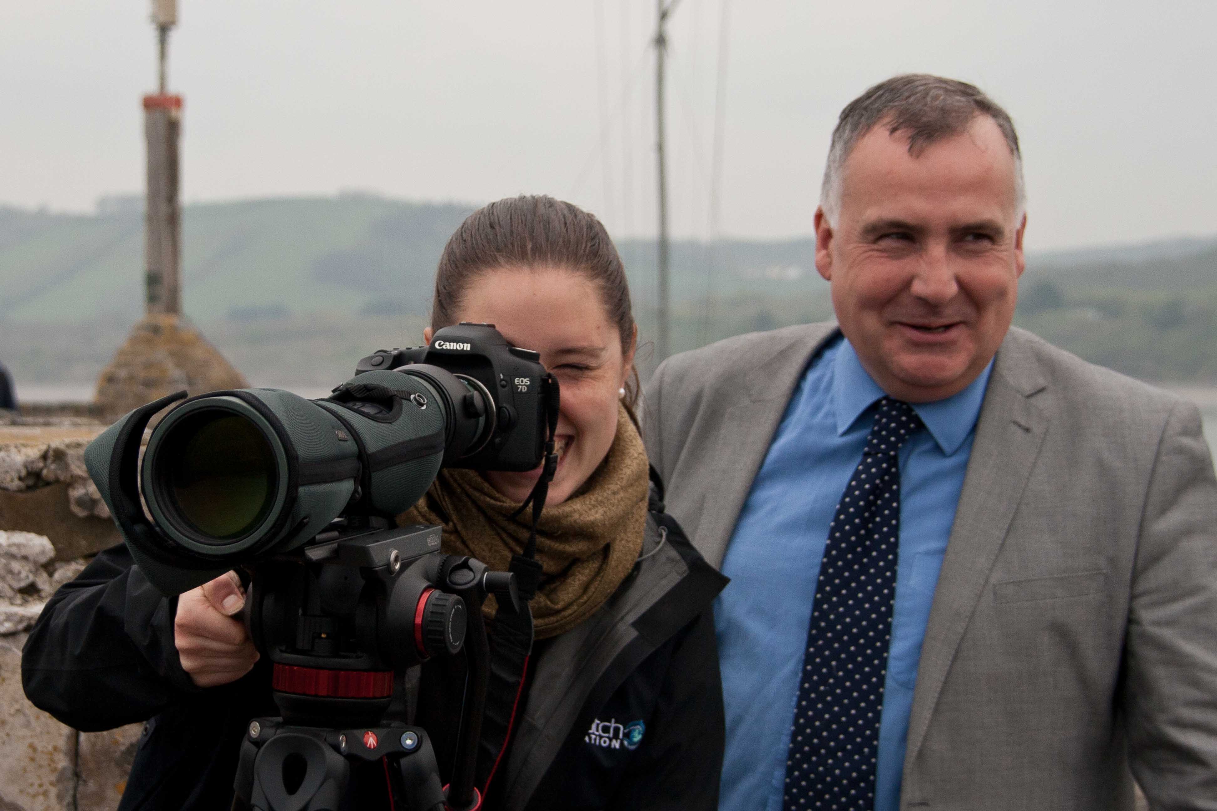 It’s thanks to the support of the local community that we were able to gain funding for the digiscope and launch the new project. We are especially grateful to the friends and family of Dave Bennett, who clubbed together to raise funds for Sea Watch. Dave, along with his wife Delyth, was a keen supporter of the Sea Watch Foundation and we dedicate this project to his memory. On Wednesday 23rd April our staff and interns joined Delyth and her family for the official unveiling of the equipment.