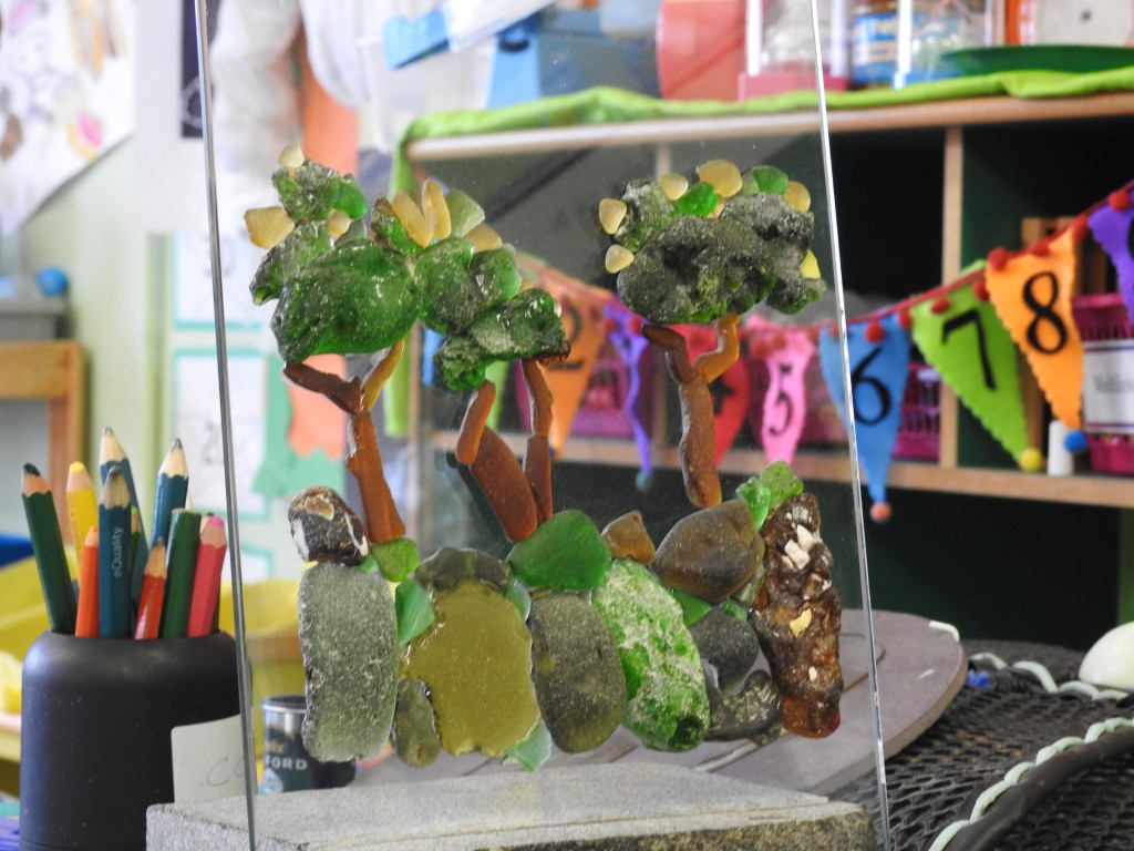 Local artist, Richard Blacklaw-Jones, led the session, showing the children some of the fantastic work he has created from items he’s found around the Welsh coast. Richard has spent the last 18 years creating art work from different items he’s found on the coast. He first started producing glass mosaic artwork and then moved into using metal pieces, which had washed up from nearby docks. Richards work not only makes wonderful art but also helps improve the environment, his work with copper and lead, which are quite toxic for example, meant that nearby Milford Haven Estuary used to be quite polluted.