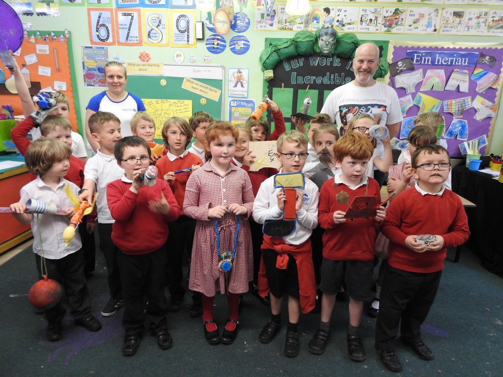 Local artist, Richard Blacklaw-Jones, led the session, showing the children some of the fantastic work he has created from items he’s found around the Welsh coast. After this the children began using their imagination to design different things they’d like to make. Ideas varying from a cat to a miniature swing!