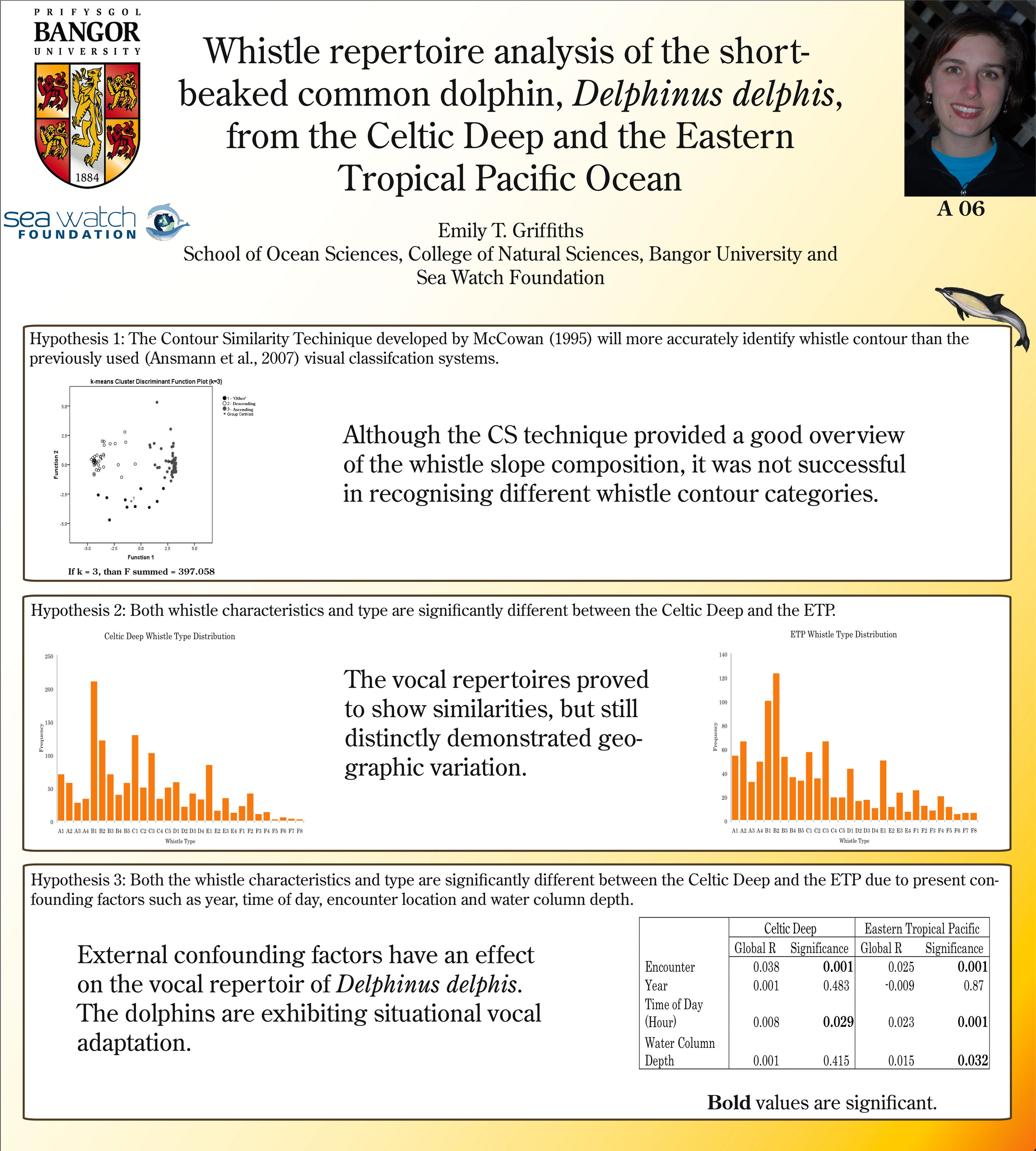 Hickey, R. et al. (2008) Comparison of passive acoustic and visual survey techniques on bottlenose dolphins (Tursiops truncatus) in the Cardigan Bay SAC, Wales. Poster at the 22nd Annual Conference of the European Cetacean Society, Egmond aan Zee, Netherlands, 10-12 March 2008.